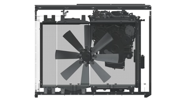 Para garantir que os motores funcionem sempre de forma eficiente e confiável, o arrefecimento é crucial. O resfriamento AirSense® foi desenvolvido para a Fendt IDEAL. A ideia: capacidade máxima de resfriamento com o mínimo de esforço de limpeza. O resfriamento AirSense® consiste em uma ventoinha reversível de 950 mm e uma superfície de arrefecimento de 2,7 m². O ar é aspirado centralmente através de uma grade do radiador no lado superior da Fendt IDEAL. Dependendo da temperatura e do tempo, o ventilador muda automaticamente a direção da rotação e sopra o resfriador de forma confiável.